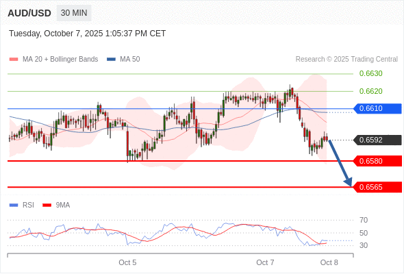 在 0.6610 之下,看跌,目标价位为 0.6580 ,然后为 0.6565 。