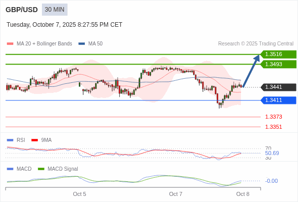 英镑/美元 当日内 : 看涨。