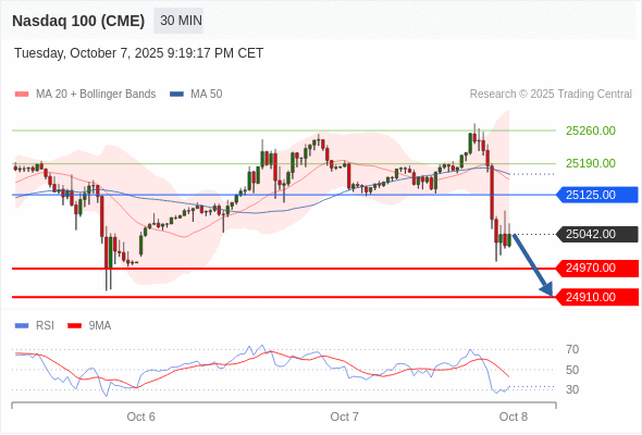 在 25125.00 之下,看跌,目标价位为 24970.00 ,然后为 24910.00 。