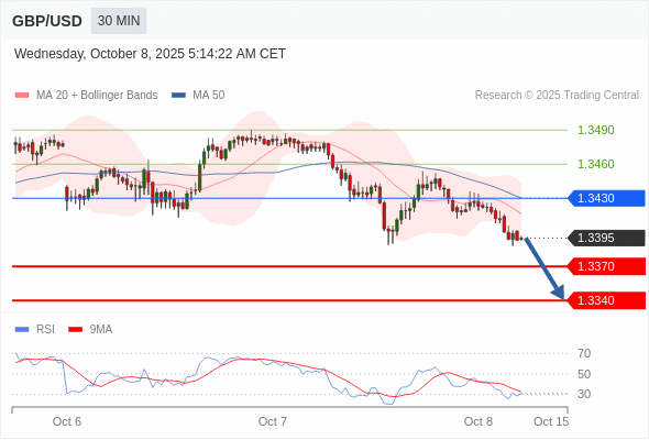 在 1.3430 之下,看跌,目标价位为 1.3370 ,然后为 1.3340 。