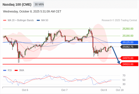 在 25125.00 之下,看跌,目标价位为 24970.00 ,然后为 24910.00 。