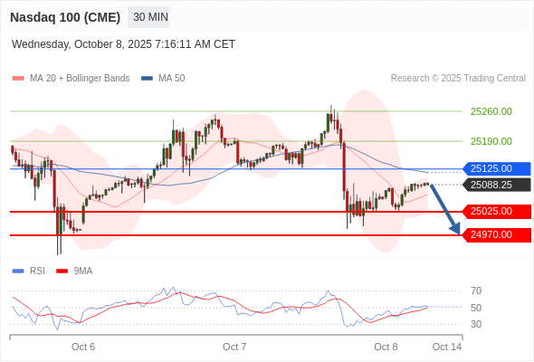 在 25125.00 之下,看跌,目标价位为 25025.00 ,然后为 24970.00 。