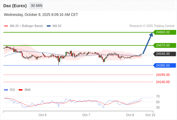 在 24380.00 之上,看涨,目标价位为 24670.00 ,然后为 24860.00 。