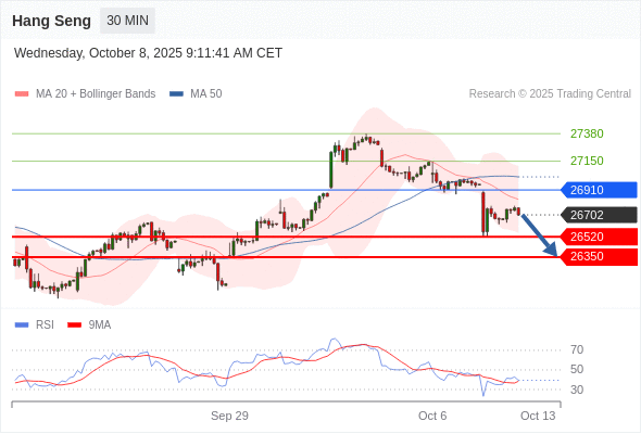 恒生指数 当日内: 朝26350运行。