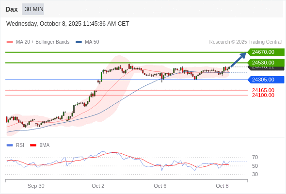 在 24305.00 之上,看涨,目标价位为 24530.00 ,然后为 24670.00 。