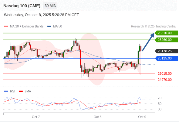 在 25125.00 之上,看涨,目标价位为 25260.00 ,然后为 25310.00 。