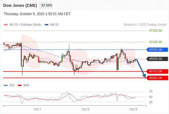 交易策略: 在 47055.00 之下,看跌,目标价位为 46750.00 ,然后为 46660.00 。