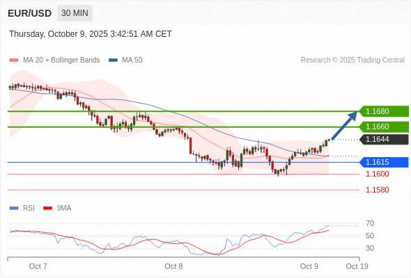 在 1.1615 之上,看涨,目标价位为 1.1660 ,然后为 1.1680 。