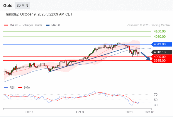 在 4049.00 之下,看跌,目标价位为 4000.00 ,然后为 3985.00 。