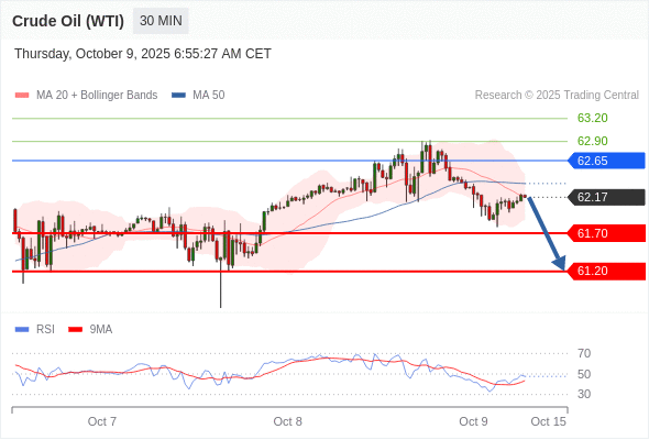 在 62.65 之下,看跌,目标价位为 61.70 ,然后为 61.20 。