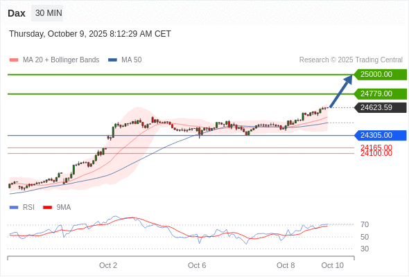 在 24305.00 之上,看涨,目标价位为 24779.00 ,然后为 25000.00 。