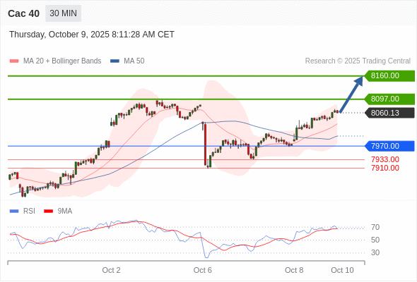 Cac 40 当日内: 期待8097.00。
