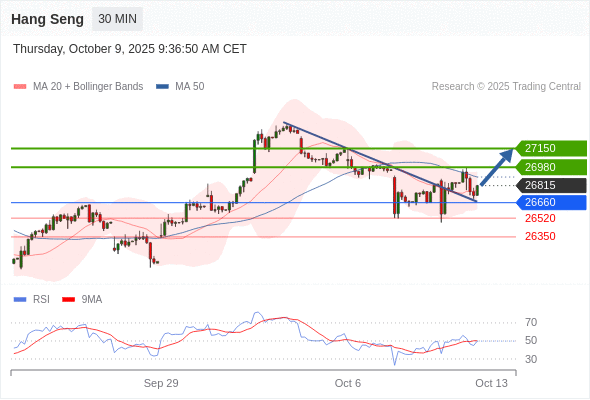 恒生指数 当日内: 目标位为27150。