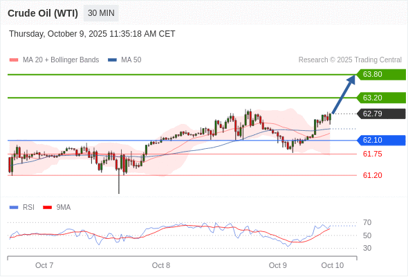 在 62.10 之上,看涨,目标价位为 63.20 ,然后为 63.80 。