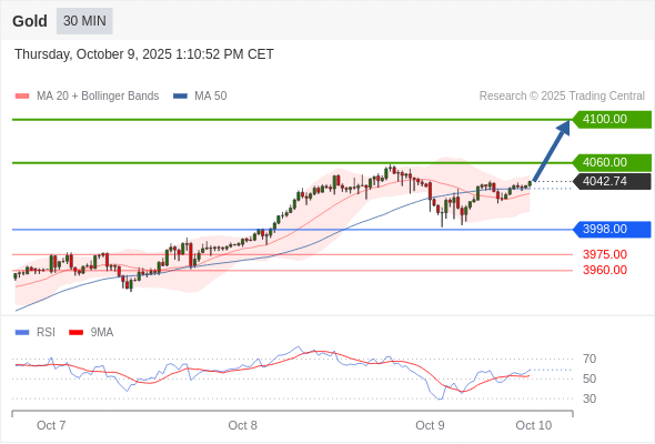 在 3998.00 之上,看涨,目标价位为 4060.00 ,然后为 4100.00 。