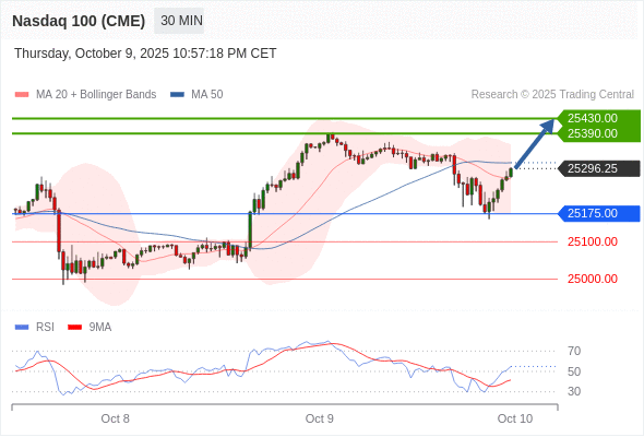 在 25175.00 之上,看涨,目标价位为 25390.00 ,然后为 25430.00 。