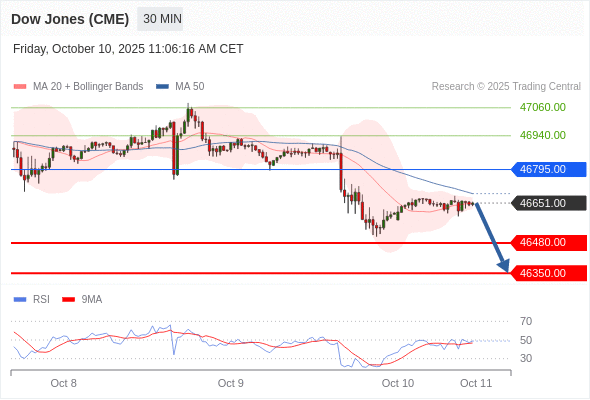 在 46795.00 之下,看跌,目标价位为 46480.00 ,然后为 46350.00 。