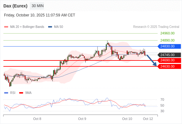 交易策略: 在 24830.00 之下,看跌,目标价位为 24690.00 ,然后为 24630.00 。