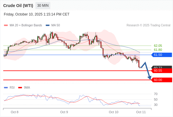 在 61.50 之下,看跌,目标价位为 60.55 ,然后为 60.00 。