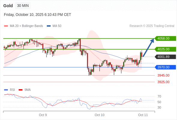 在 3970.00 之上,看涨,目标价位为 4025.00 ,然后为 4058.00 。