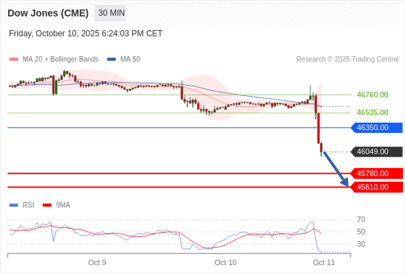 在 46350.00 之下,看跌,目标价位为 45780.00 ,然后为 45610.00 。