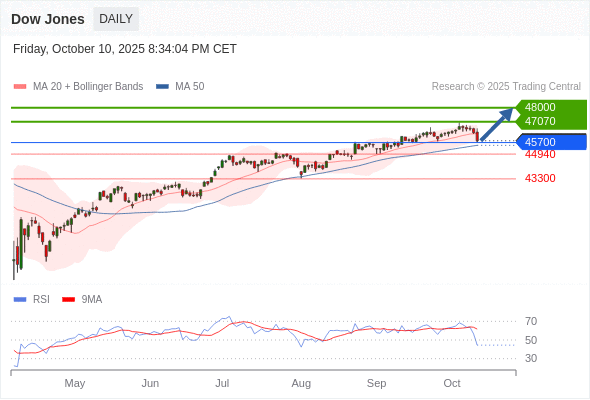 在 45700 之上,看涨,目标价位为 47070 ,然后为 48000 。