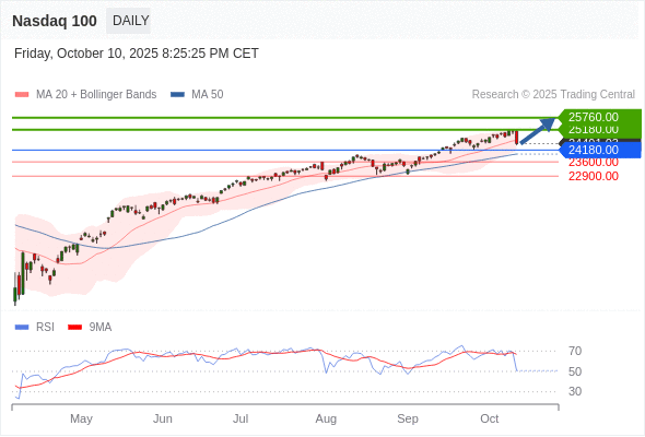 在 24180.00 之上,看涨,目标价位为 25180.00 ,然后为 25760.00 。