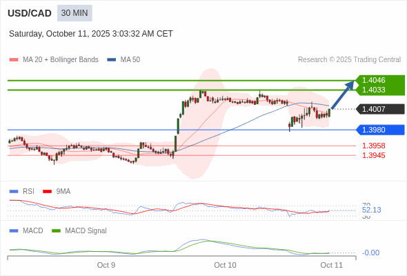 美元/加元 当日内 : 看涨。