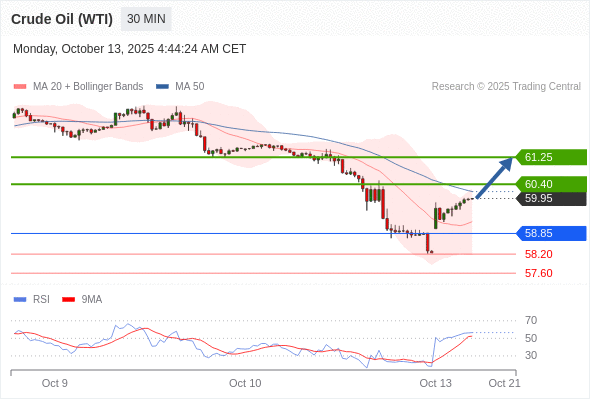 在 58.85 之上,看涨,目标价位为 60.40 ,然后为 61.25 。