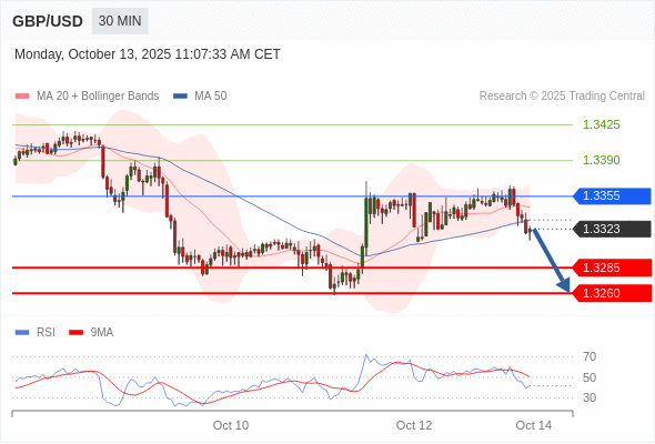 在 1.3355 之下,看跌,目标价位为 1.3285 ,然后为 1.3260 。