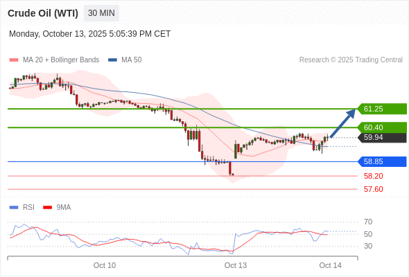 在 58.85 之上,看涨,目标价位为 60.40 ,然后为 61.25 。