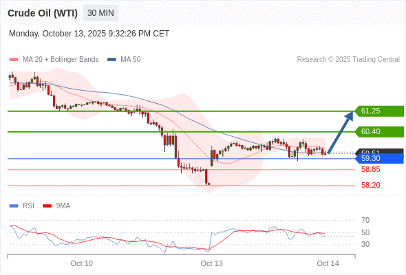 在 59.30 之上,看涨,目标价位为 60.40 ,然后为 61.25 。