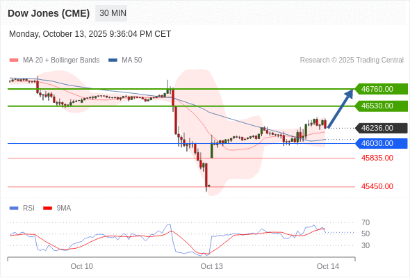 在 46030.00 之上,看涨,目标价位为 46530.00 ,然后为 46760.00 。
