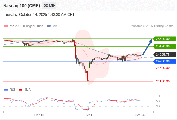 在 24730.00 之上,看涨,目标价位为 25170.00 ,然后为 25390.00 。