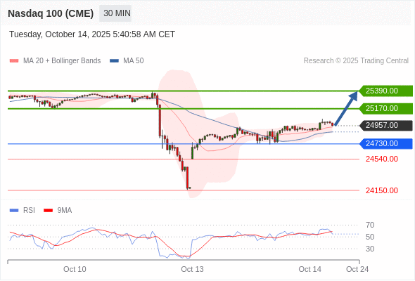 在 24730.00 之上,看涨,目标价位为 25170.00 ,然后为 25390.00 。