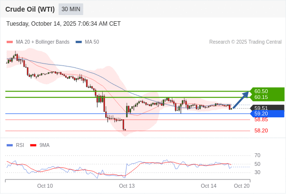 在 59.20 之上,看涨,目标价位为 60.15 ,然后为 60.50 。