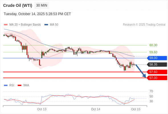 交易策略: 在 59.00 之下,看跌,目标价位为 57.60 ,然后为 57.00 。