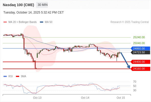 在 24860.00 之下,看跌,目标价位为 24400.00 ,然后为 24160.00 。