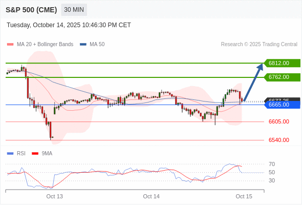 在 6665.00 之上,看涨,目标价位为 6762.00 ,然后为 6812.00 。