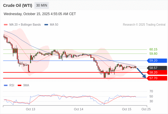 在 59.20 之下,看跌,目标价位为 58.20 ,然后为 57.70 。