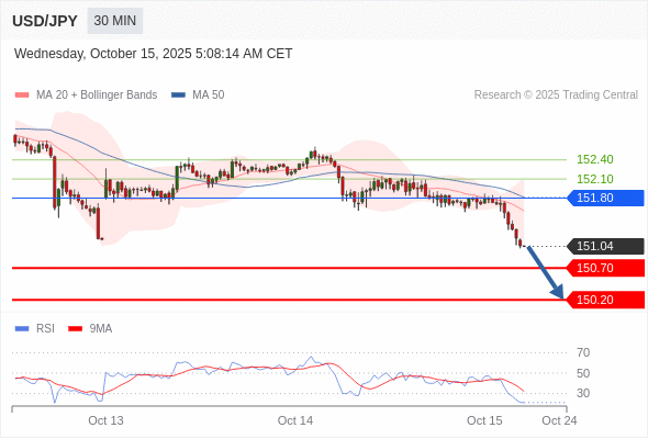在 151.80 之下,看跌,目标价位为 150.70 ,然后为 150.20 。
