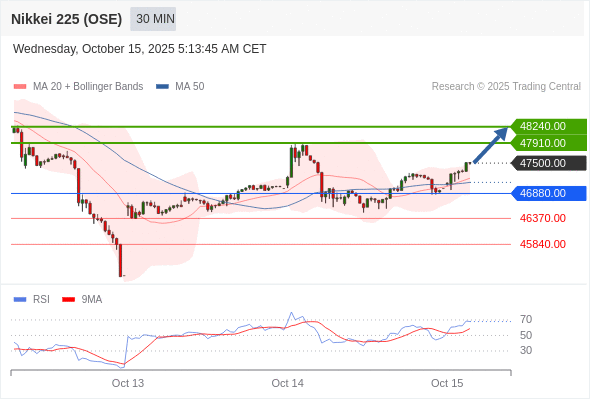 在 46880.00 之上,看涨,目标价位为 47910.00 ,然后为 48240.00 。