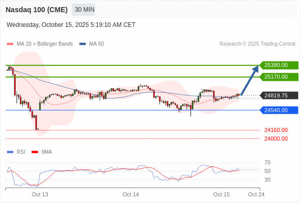 在 24540.00 之上,看涨,目标价位为 25170.00 ,然后为 25390.00 。