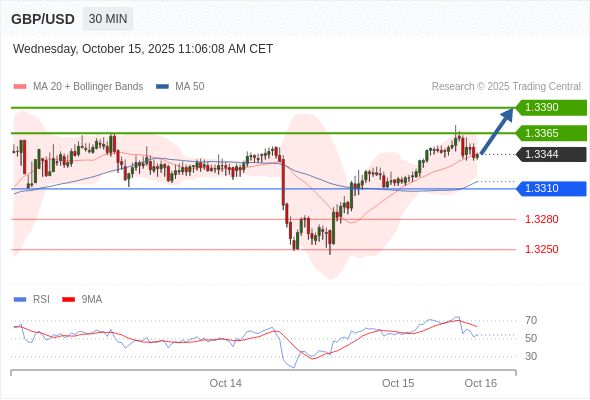 在 1.3310 之上,看涨,目标价位为 1.3365 ,然后为 1.3390 。