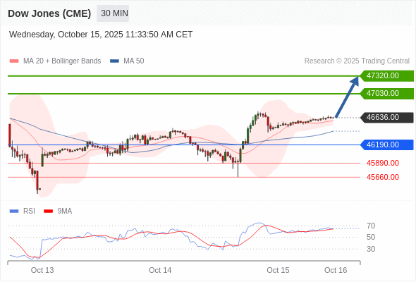 在 46190.00 之上,看涨,目标价位为 47030.00 ,然后为 47320.00 。