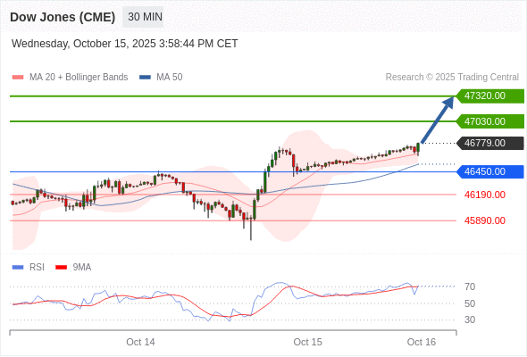 在 46450.00 之上,看涨,目标价位为 47030.00 ,然后为 47320.00 。