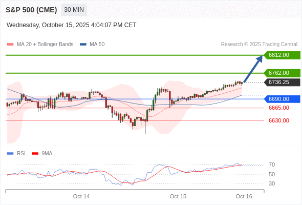 在 6690.00 之上,看涨,目标价位为 6762.00 ,然后为 6812.00 。