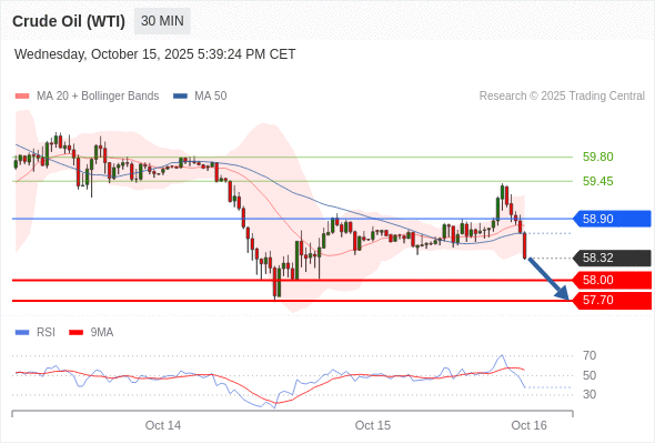 在 58.90 之下,看跌,目标价位为 58.00 ,然后为 57.70 。