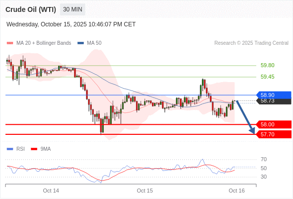 在 58.90 之下,看跌,目标价位为 58.00 ,然后为 57.70 。