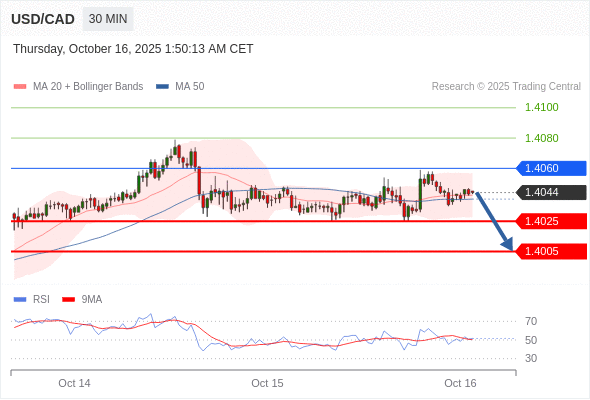 在 1.4060 之下,看跌,目标价位为 1.4025 ,然后为 1.4005 。